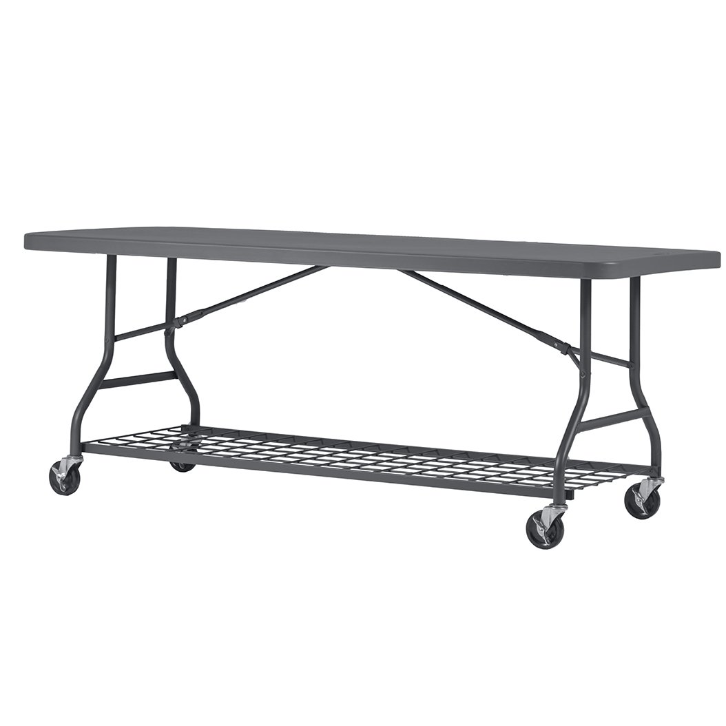 Iznimno čvrsti i otporan sklopivi banketni stol španjolskog proizvođača ZOWN dimenzije 180x75cm na kotačima i s mrežastom policom.